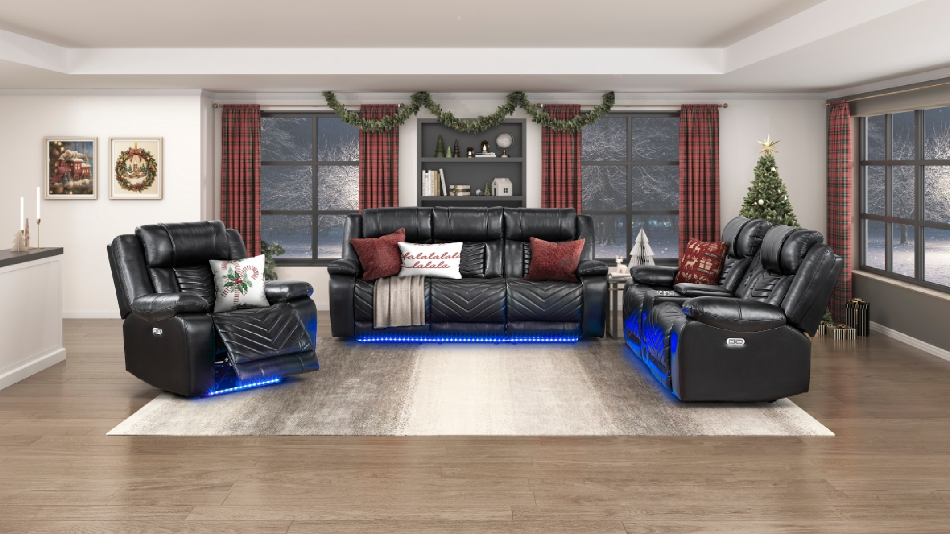 Boyington Black Power Reclining Set w/Massage & Heat Seats