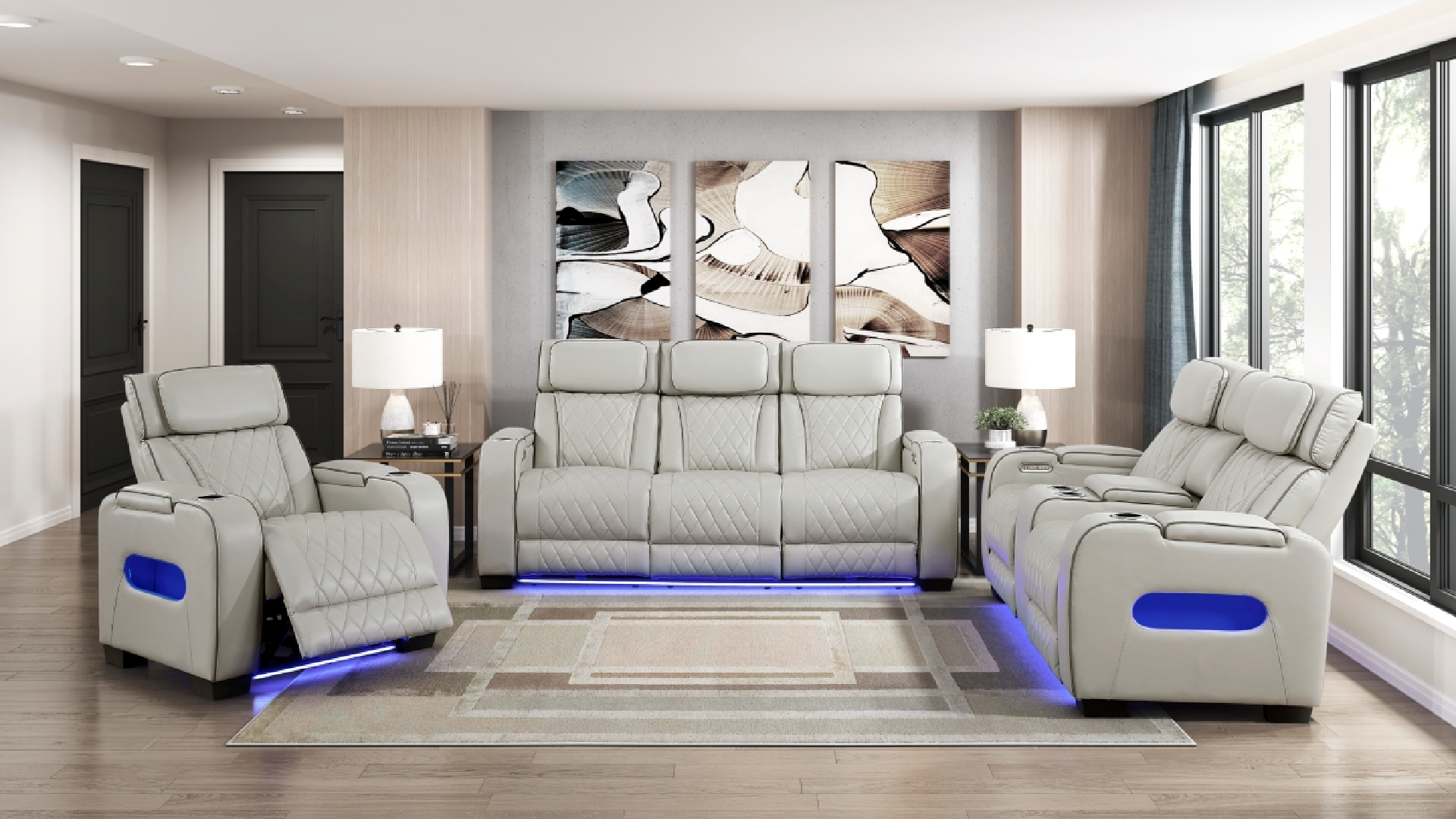 SPL 8449 Grey Power Reclining Set w/Massage & Heated Seats
