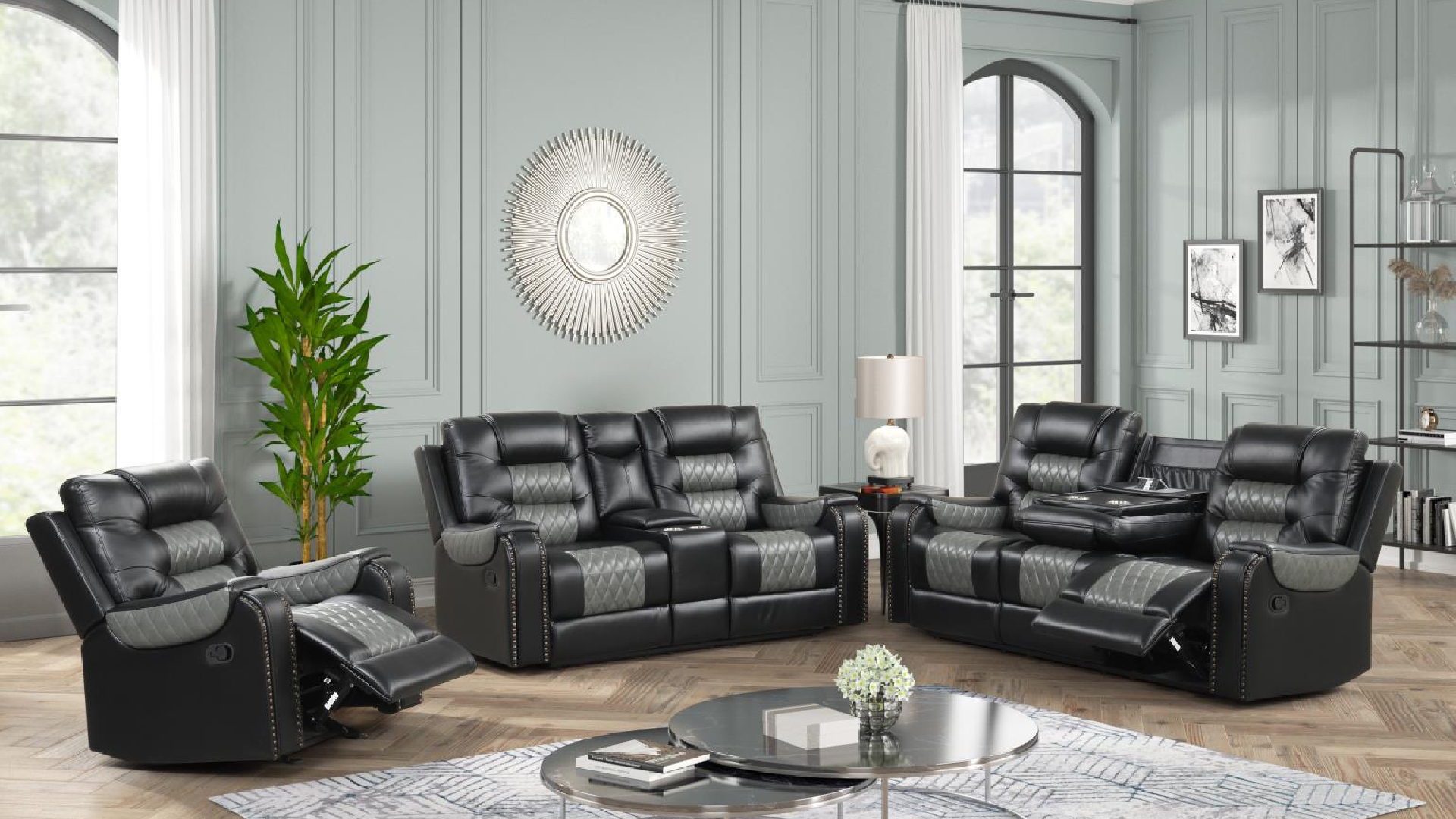 SPL 8449 Black Power Reclining Set w/Massage & Heated Seats