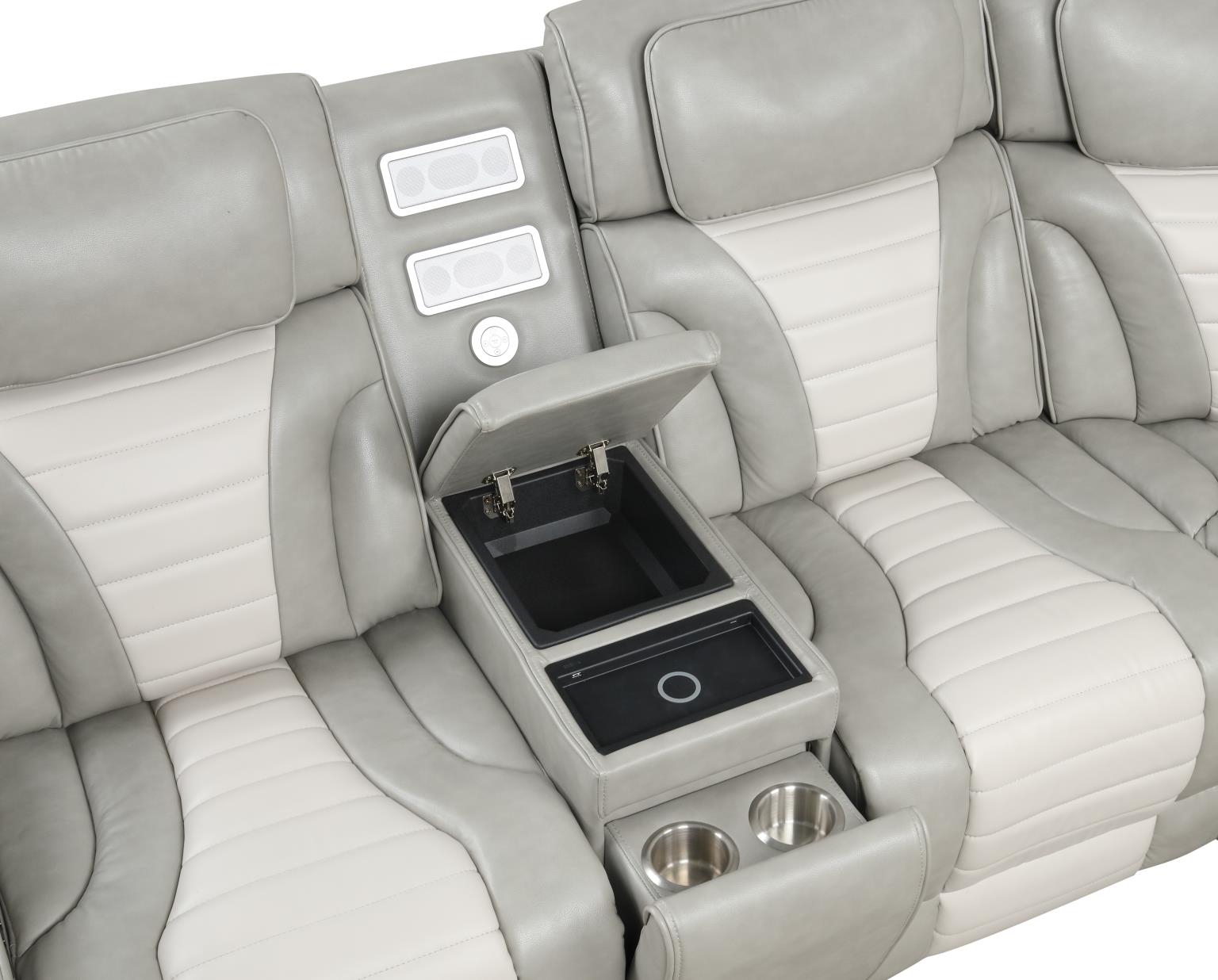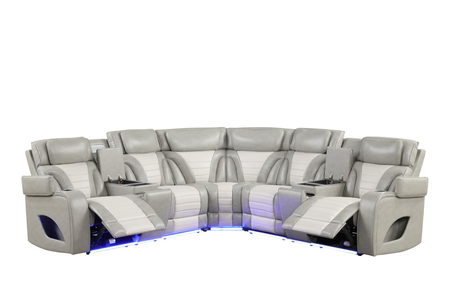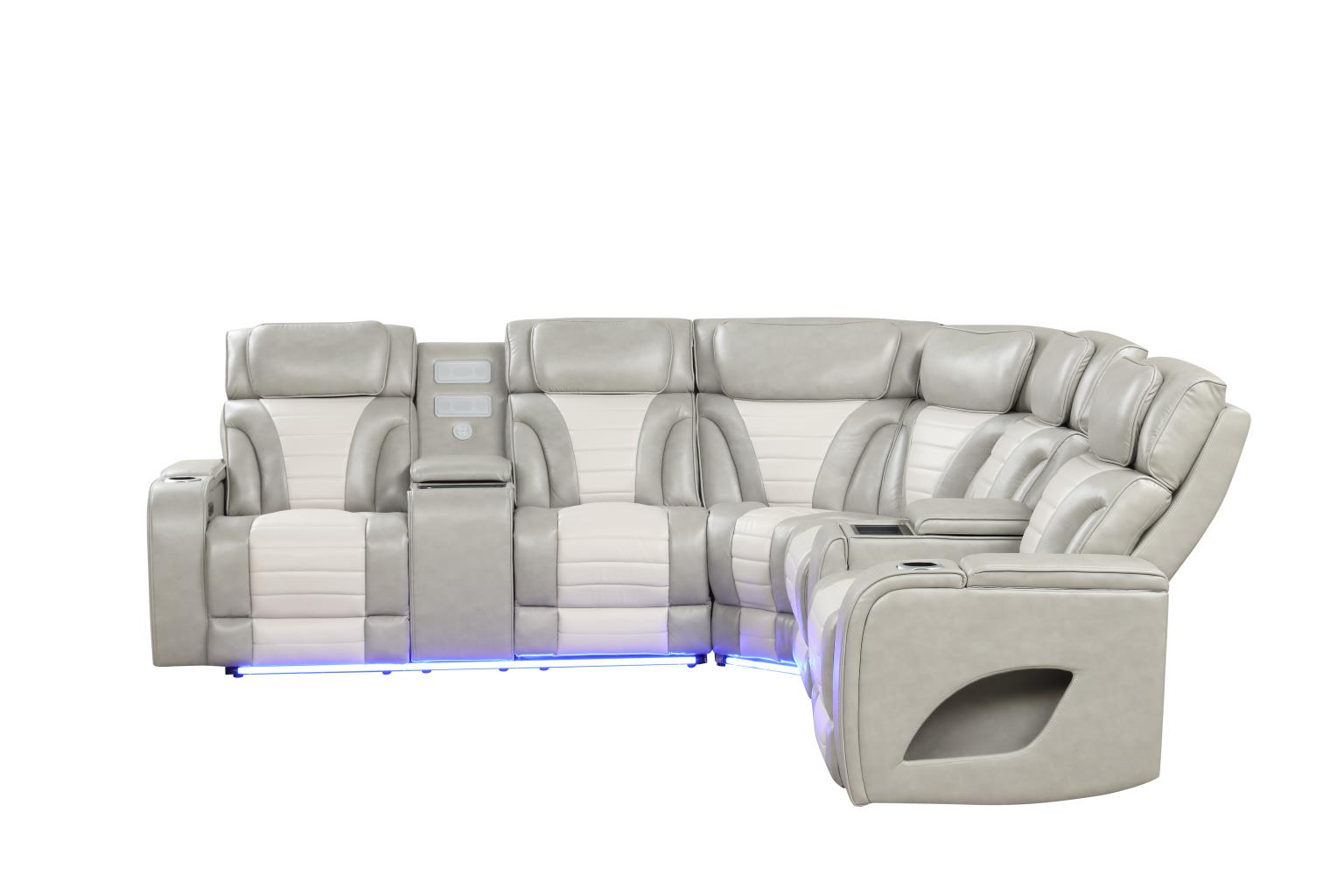 | SPL S408 | Atlas – Gray & Ice 3 PCS Power Recliner Sectional with Power Headrest, Console, Wireless Charging, Speaker, LED. USB Charger, Cup Holder | 114 x 114 x 41.5 H |