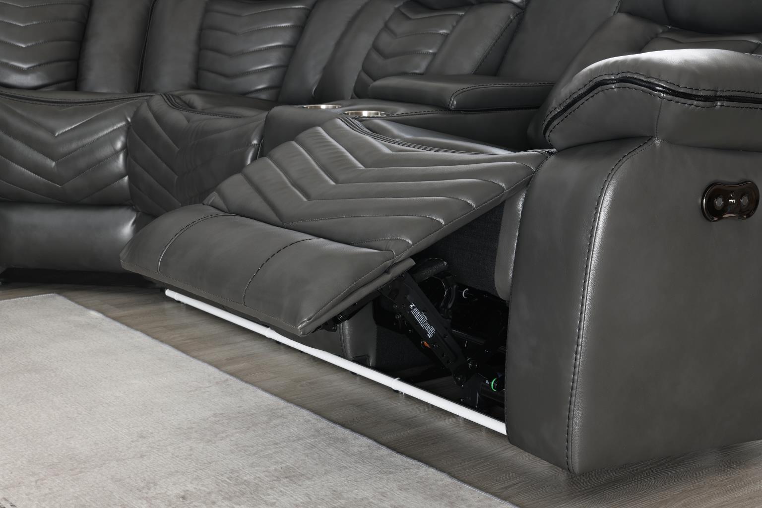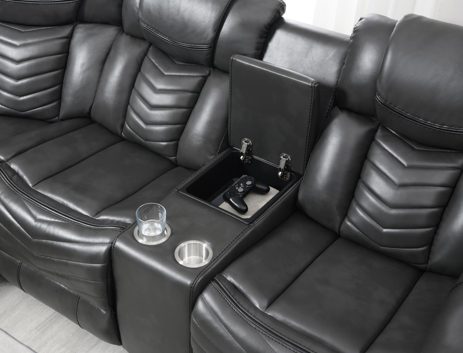 | SPL S481 | Zenith – 3PC Gray Power Sectional, Bluetooth Speaker, Two storage console, Cup Holder, Built-in LED Light, USB Charger | 111 x 111 x 41 H |