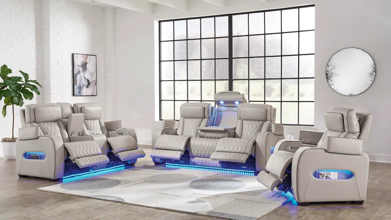 Boyington Grey Power Reclining Set w/Massage & Heat Seats