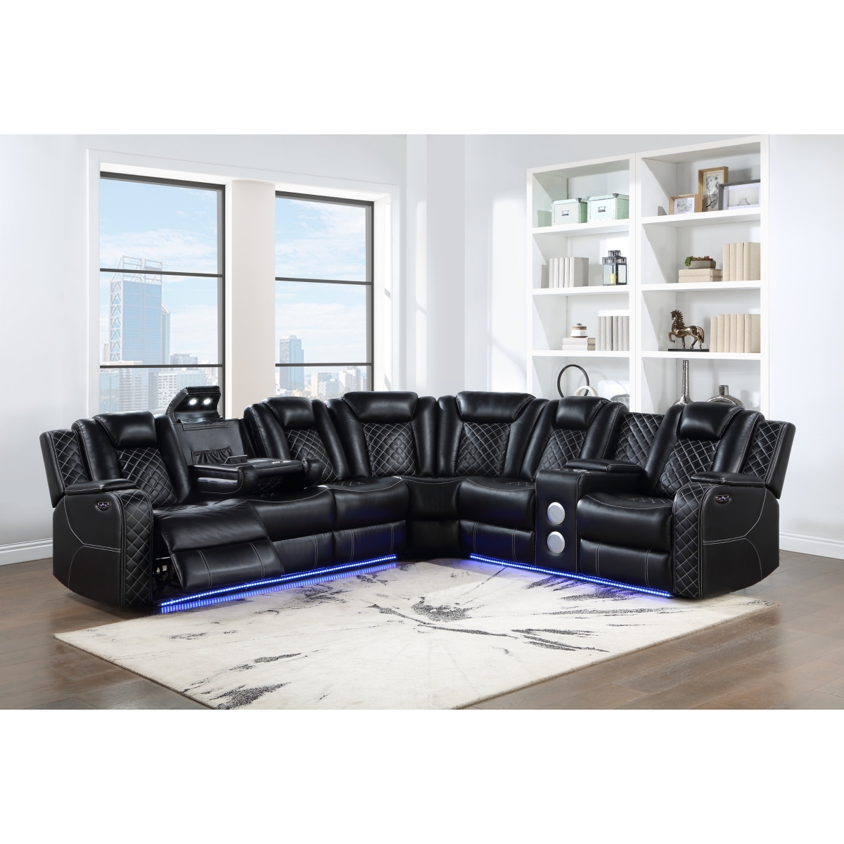 SPL 8895 Black 3 Piece Power Recliner Sectional
